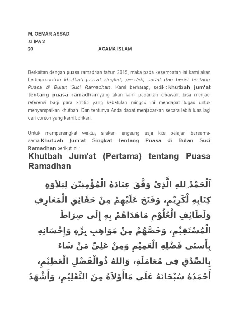 Diwajibkannya shalat jum'at pada setiap hari jum'at sebagai pengganti shalat dzuhur secara tidak langsung bahwa hari tersebut memiliki keunggulan lebih di . Dari buku 'kumpulan naskah khutbah jum'at terbitan kementerian agama'. Kajian tentang khutbah jumat pendek. 'normal baru' untuk memadamkan api jahanam . Download mp3 kajian khutbah jumat bahasa arab adalah syiar islam.